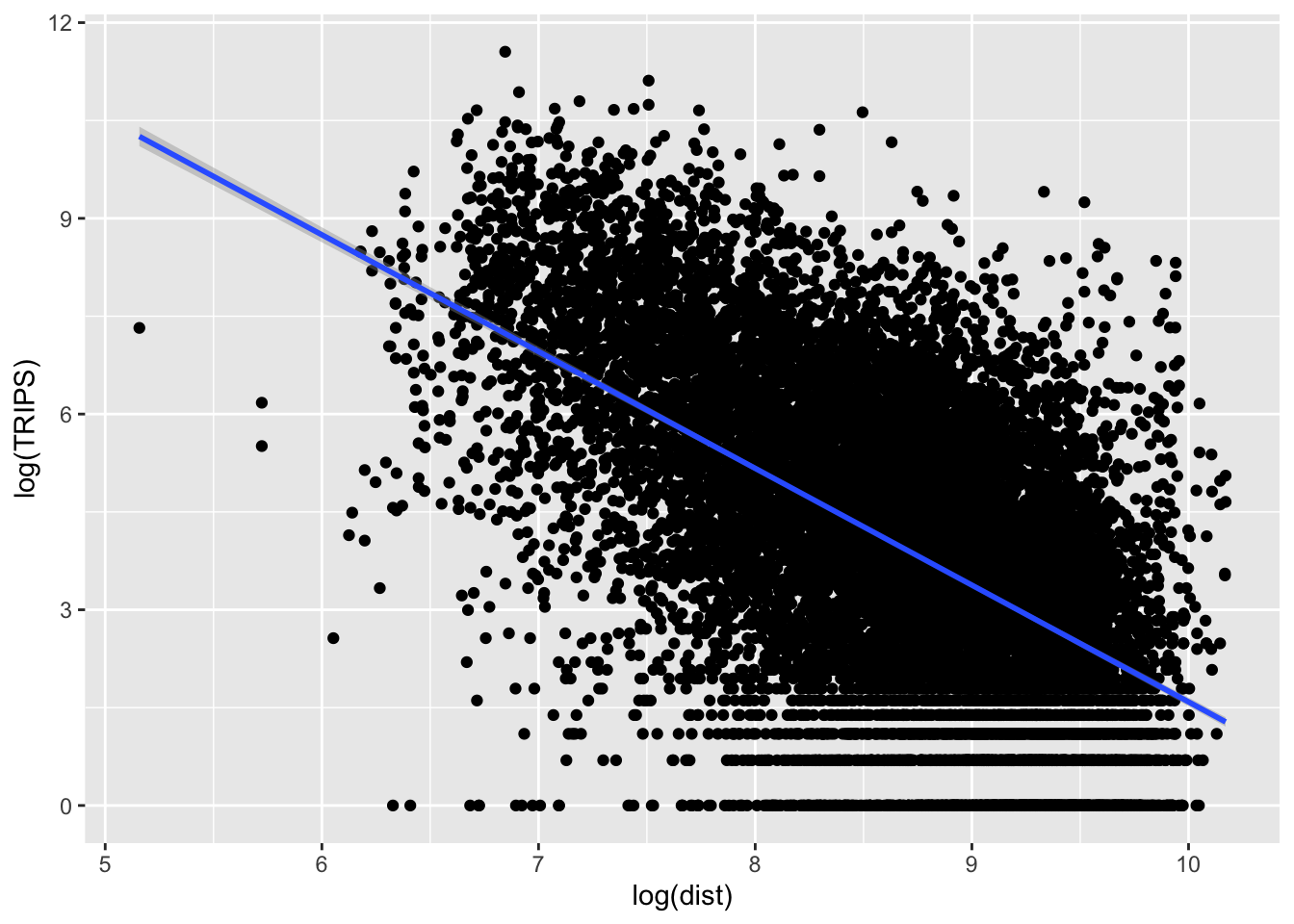 rename(decTRIPS = "decSIM$fitted.values")Repeat for Doubly Constrained SIM (i.e. dbcSIM)